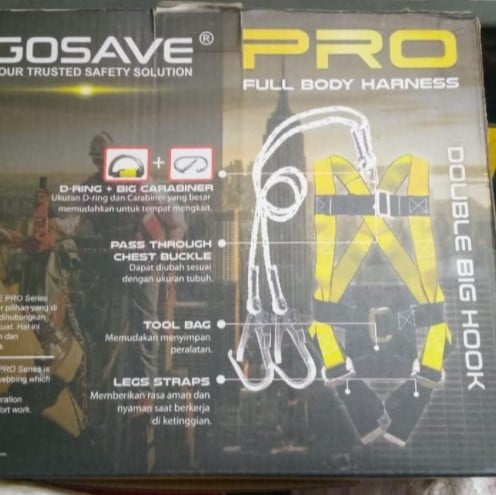 GoSave telah berpengalaman cukup lama dalam merancang dan mengembangkan alat safety, salah satunya adalah body harness ini. Mengandalkan bahan tali webbing terbaik di kelasnya yang mampu menahan beban hingga 2300 kilogram. Full body harness Pro Series ini dirancang dengan hook ganda yang kuat dan kokoh. Direkomendasikan bagi Anda yang beraktivitas di ketinggian. Memberikan rasa aman dan nyaman sewaktu bekerja. Memiliki mutu dan kualitas terbaik sehingga bisa digunakan untuk masa pakai yang lama.