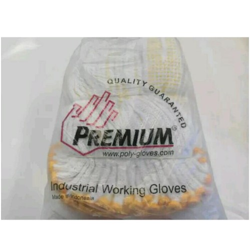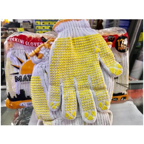 Sarung tangan bintik ini dirancang untuk memberikan perlindungan pekerja proyek atau untuk melindungi tangan saat mengangkat barang. Keunggulan sarung tangan jenis ini adalah tidak licin saat mengangkat barang. Kualitas bagus, dotting kuning tidak mudah lepas. Biasa digunakan untuk pekerjaan industri atau manufaktur, untuk melindungi tangan dari gesekan dan tidak mudah slip. Tetap nyaman digunakan walaupun kondisi tangan berkeringat.