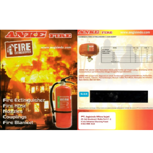 ANKE merupakan brand APA yang sudah terkemuka di Indonesia. Umumnya merancang pemadam api dengan Co2 sebagai media pemadam. Gas Co2 berfungsi untuk mengikat oksigen dan mengisolasinya karena CO2 memiliki masa yang lebih berat dari oksigen. Penggunaannya yang mudah menjadikan APAR lebih diminati dalam memadamkan api. APAR digunakan dengan menarik pin pengaman dan menekan tuas sambil mengarahkan selang ke titik api, sehingga api padam.