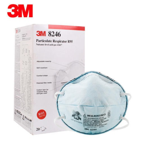 Respirator partikulat R95 yang ringan dan sekali pakai dibangun dengan bahan filter karbon untuk aplikasi seperti etsa kaca, pemrosesan kimia, pemrosesan kertas, operasi peleburan aluminium dan pembuatan bir di mana partikel dan tingkat gangguan gas asam. Masker R95 dari 3M ini didesain untuk memberikan perlindungan pernapasan yang andal terhadap partikel berbasis minyak dan non-minyak tertentu.