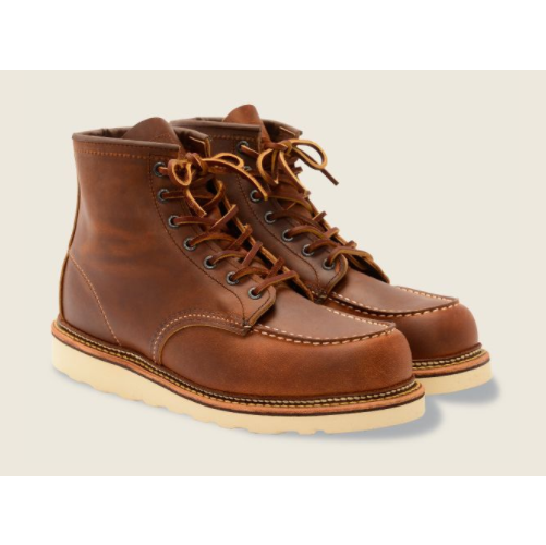 Classic Moc pertama kali dibuat oleh Red Wing pada tahun 1952. Dalam beberapa dekade sejak itu, sepatu ini berkembang menjadi salah satu sepatu bot gaya hidup yang paling disukai di dunia. Fitur-fitur favorit The Classic Moc aktif hingga saat ini, karena sepatu bot masih dibangun dengan kebanggaan dan proses yang sama seperti dulu. Konstruksi Moc toe dan outsole karet Traction Tred yang ikonik memimpin jalan, dan jahitan rangkap tiga Puritan serta welt untuk ketahanan air tambahan.